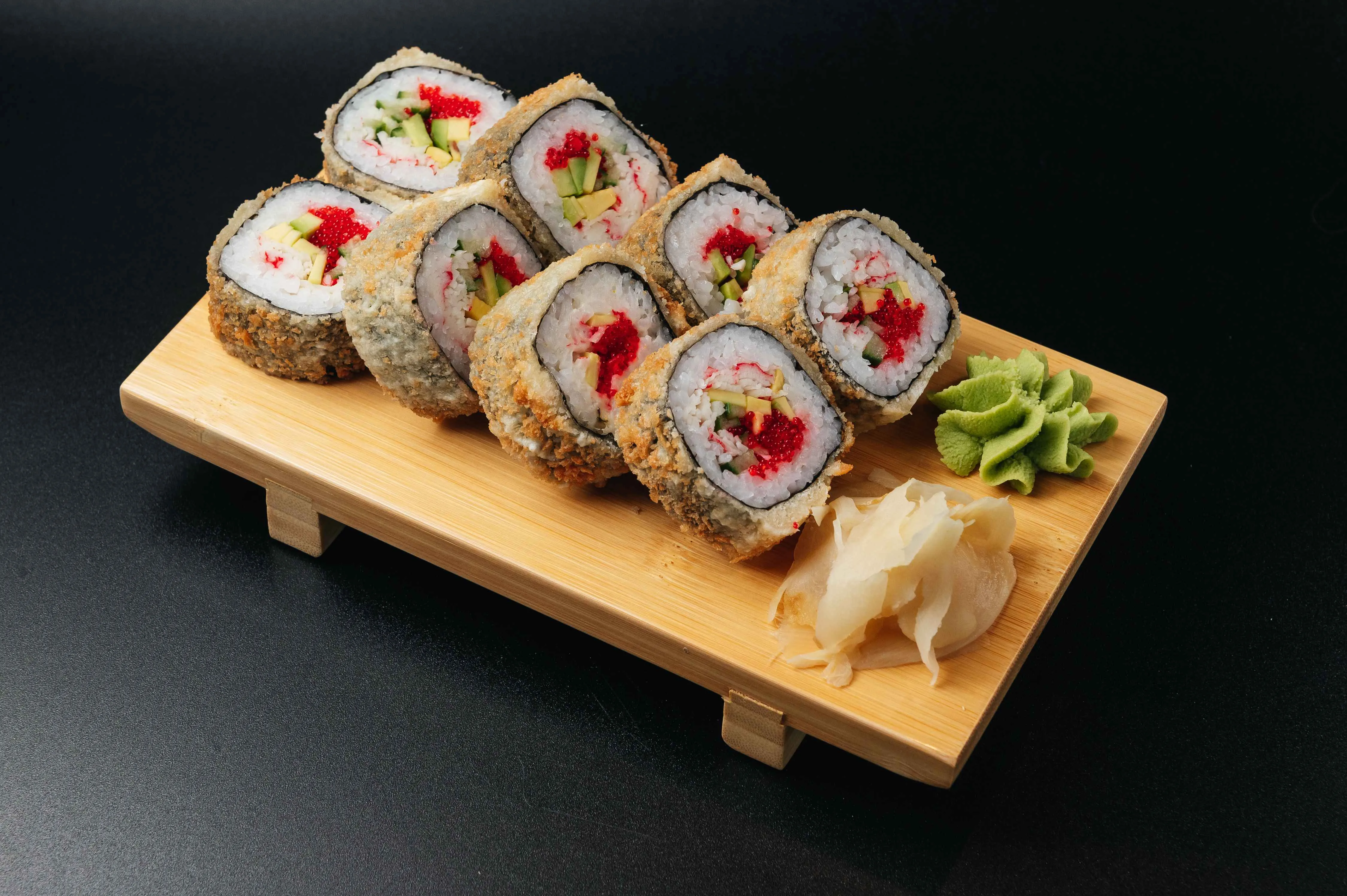Avocado,cucumber,spicy Crab, Topped With Spicy Mayo & Sushi Sauce and Tempura Crunch